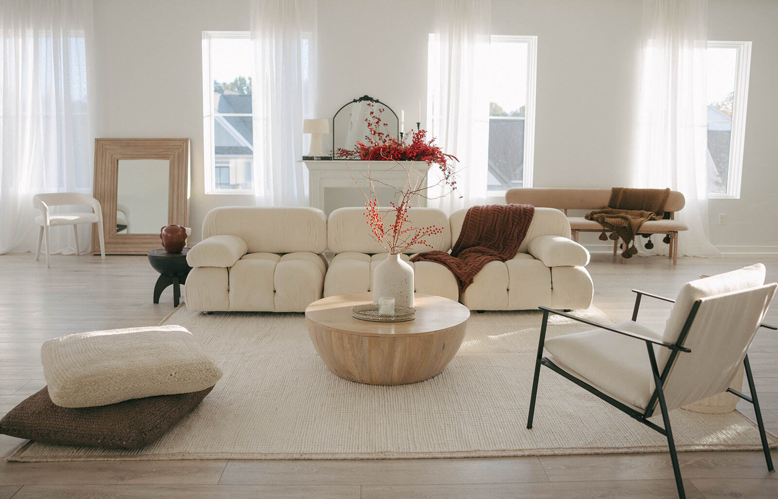 Nature’s influence is still strong this season—and we’re all for it. Think oversized plants, light linen curtains, and natural wood finishes. It’s about creating a space that feels calm, relaxed, and connected to the outdoors, like your own indoor retreat. These elements help bring a sense of tranquility and balance to any room.